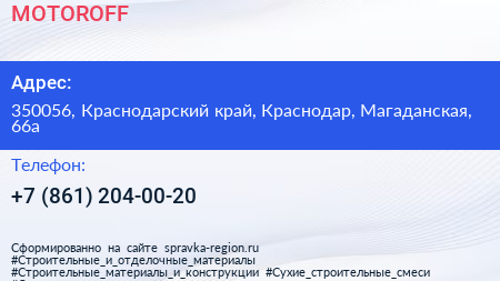 MOTOROFF по адресу 350056, Краснодарский край, Краснодар, Магаданская, 66а в дальнейшем Организация, размещена в следующих категориях: