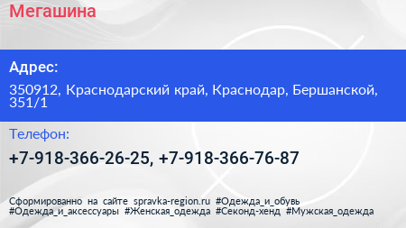 Мегашина по адресу 350912, Краснодарский край, Краснодар, Бершанской, 351/1 в дальнейшем Организация, размещена в следующих категориях: