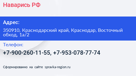 Наварись.РФ по адресу 350910, Краснодарский край, Краснодар, Восточный обход, 1а/2 в дальнейшем Организация, размещена в следующих категориях: