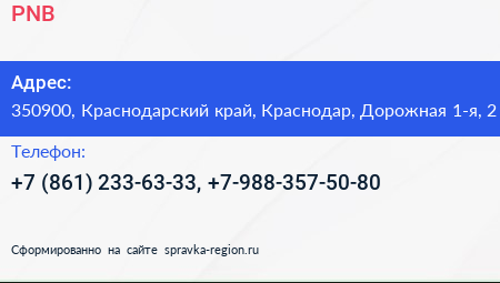 PNB по адресу 350900, Краснодарский край, Краснодар, Дорожная 1-я, 2 в дальнейшем Организация, размещена в следующих категориях: