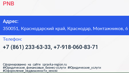 PNB по адресу 350051, Краснодарский край, Краснодар, Монтажников, 6 в дальнейшем Организация, размещена в следующих категориях: