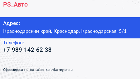 PS_Авто по адресу Краснодарский край, Краснодар, Краснодарская, 5/1 в дальнейшем Организация, размещена в следующих категориях: