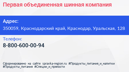 Первая объединенная шинная компания по адресу 350059, Краснодарский край, Краснодар, Уральская, 128 в дальнейшем Организация, размещена в следующих категориях: