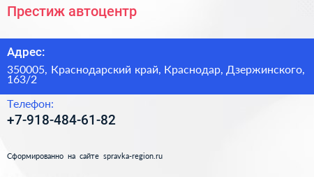 Престиж, автоцентр по адресу 350005, Краснодарский край, Краснодар, Дзержинского, 163/2 в дальнейшем Организация, размещена в следующих категориях: