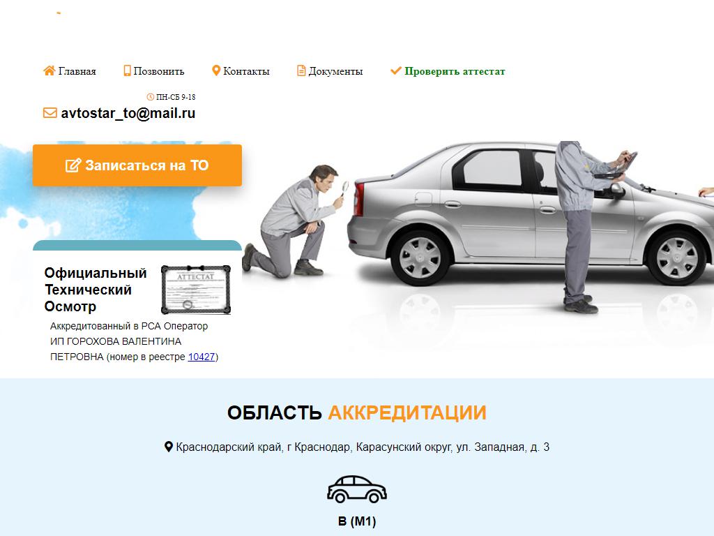 Пункт технического осмотра, ИП Горохова В.П. по адресу 350018, Краснодарский край, Краснодар, Западная, 3 в дальнейшем Организация, размещена в следующих категориях: