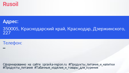 Rusoil по адресу 350005, Краснодарский край, Краснодар, Дзержинского, 227 в дальнейшем Организация, размещена в следующих категориях: