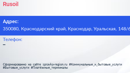 Rusoil по адресу 350080, Краснодарский край, Краснодар, Уральская, 148/6 в дальнейшем Организация, размещена в следующих категориях: