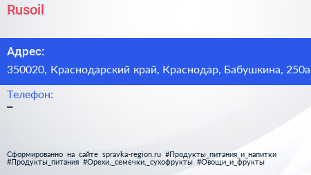 Rusoil по адресу 350020, Краснодарский край, Краснодар, Бабушкина, 250а в дальнейшем Организация, размещена в следующих категориях: