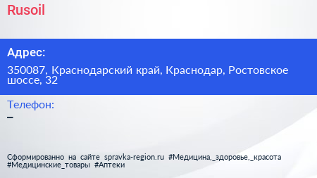 Rusoil по адресу 350087, Краснодарский край, Краснодар, Ростовское шоссе, 32 в дальнейшем Организация, размещена в следующих категориях: