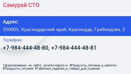 Самурай, СТО по адресу 350005, Краснодарский край, Краснодар, Грибоедова, 2 в дальнейшем Организация, размещена в следующих категориях: