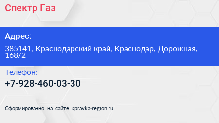 Спектр Газ по адресу 385141, Краснодарский край, Краснодар, Дорожная, 168/2 в дальнейшем Организация, размещена в следующих категориях: