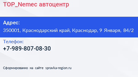 TOP_Nemec, автоцентр по адресу 350001, Краснодарский край, Краснодар, 9 Января, 84/2 в дальнейшем Организация, размещена в следующих категориях: