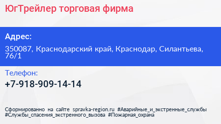 ЮгТрейлер, торговая фирма по адресу 350087, Краснодарский край, Краснодар, Силантьева, 76/1 в дальнейшем Организация, размещена в следующих категориях: