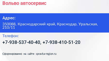 Вольво, автосервис по адресу 350088, Краснодарский край, Краснодар, Уральская, 210/11 в дальнейшем Организация, размещена в следующих категориях: