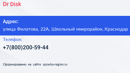 Dr. Disk по адресу улица Филатова, 22А, Школьный микрорайон, Краснодар в дальнейшем Организация, размещена в следующих категориях:
