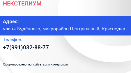 НЕКСТЕЛИУМ по адресу улица Будённого, микрорайон Центральный, Краснодар в дальнейшем Организация, размещена в следующих категориях: