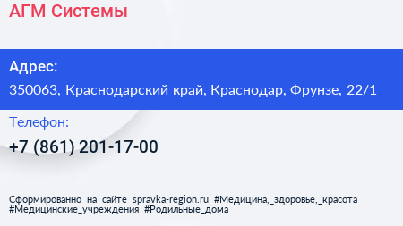 АГМ Системы по адресу 350063, Краснодарский край, Краснодар, Фрунзе, 22/1 в дальнейшем Организация, размещена в следующих категориях: