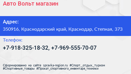Авто-Вольт, магазин по адресу 350916, Краснодарский край, Краснодар, Степная, 373 в дальнейшем Организация, размещена в следующих категориях: