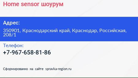 Home sensor, шоурум по адресу 350901, Краснодарский край, Краснодар, Российская, 208/1 в дальнейшем Организация, размещена в следующих категориях: