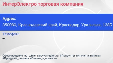 ИнтерЭлектро, торговая компания по адресу 350080, Краснодарский край, Краснодар, Уральская, 138Б в дальнейшем Организация, размещена в следующих категориях: