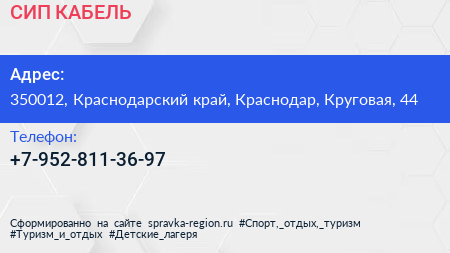 СИП КАБЕЛЬ по адресу 350012, Краснодарский край, Краснодар, Круговая, 44 в дальнейшем Организация, размещена в следующих категориях:
