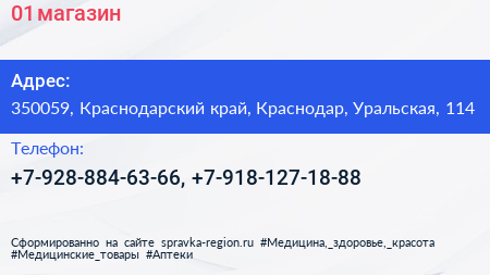01, магазин по адресу 350059, Краснодарский край, Краснодар, Уральская, 114 в дальнейшем Организация, размещена в следующих категориях: