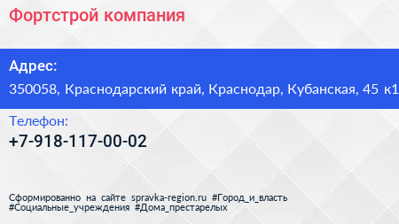 Фортстрой, компания по адресу 350058, Краснодарский край, Краснодар, Кубанская, 45 к1 в дальнейшем Организация, размещена в следующих категориях: