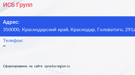 ИСБ Групп по адресу 350000, Краснодарский край, Краснодар, Головатого, 291а в дальнейшем Организация, размещена в следующих категориях: