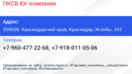 ПКСБ-Юг, компания по адресу 350028, Краснодарский край, Краснодар, Жлобы, 141 в дальнейшем Организация, размещена в следующих категориях: