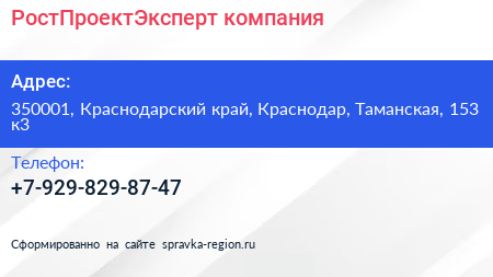 РостПроектЭксперт, компания по адресу 350001, Краснодарский край, Краснодар, Таманская, 153 к3 в дальнейшем Организация, размещена в следующих категориях: