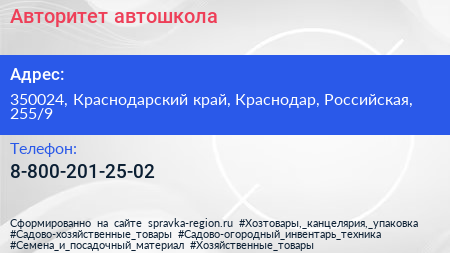 Авторитет, автошкола по адресу 350024, Краснодарский край, Краснодар, Российская, 255/9 в дальнейшем Организация, размещена в следующих категориях: