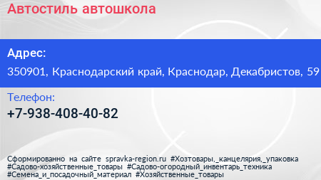 Автостиль, автошкола по адресу 350901, Краснодарский край, Краснодар, Декабристов, 59 в дальнейшем Организация, размещена в следующих категориях:
