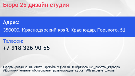 Бюро 25, дизайн-студия по адресу 350000, Краснодарский край, Краснодар, Горького, 51 в дальнейшем Организация, размещена в следующих категориях: