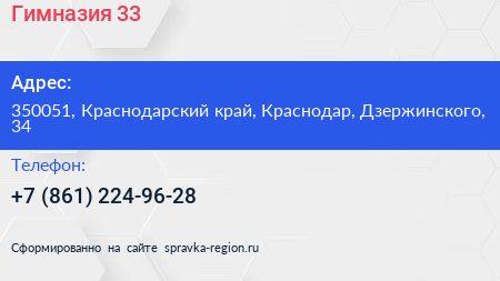 Гимназия №33 по адресу 350051, Краснодарский край, Краснодар, Дзержинского, 34 в дальнейшем Организация, размещена в следующих категориях: