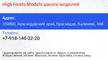 High Heels Models, школа моделей по адресу 350000, Краснодарский край, Краснодар, Калинина, 468 в дальнейшем Организация, размещена в следующих категориях: