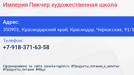 Империя Пикчер, художественная школа по адресу 350901, Краснодарский край, Краснодар, Черкасская, 91/1 в дальнейшем Организация, размещена в следующих категориях: