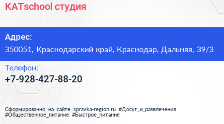 KATschool, студия по адресу 350051, Краснодарский край, Краснодар, Дальняя, 39/3 в дальнейшем Организация, размещена в следующих категориях: