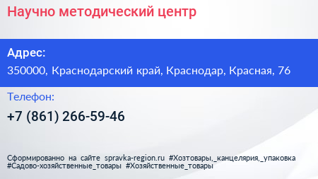 Научно-методический центр по адресу 350000, Краснодарский край, Краснодар, Красная, 76 в дальнейшем Организация, размещена в следующих категориях: