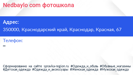 Nedbaylo.com, фотошкола по адресу 350000, Краснодарский край, Краснодар, Красная, 67 в дальнейшем Организация, размещена в следующих категориях: