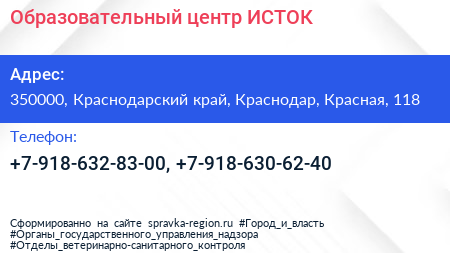 Образовательный центр ИСТОК по адресу 350000, Краснодарский край, Краснодар, Красная, 118 в дальнейшем Организация, размещена в следующих категориях: