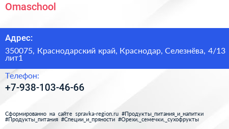 Omaschool по адресу 350075, Краснодарский край, Краснодар, Селезнёва, 4/13 лит1 в дальнейшем Организация, размещена в следующих категориях: