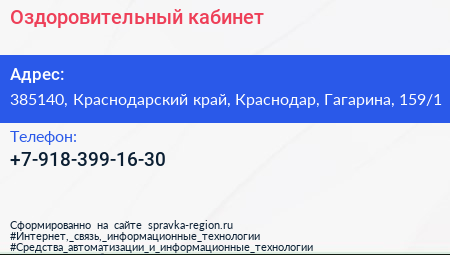 Оздоровительный кабинет по адресу 385140, Краснодарский край, Краснодар, Гагарина, 159/1 в дальнейшем Организация, размещена в следующих категориях:
