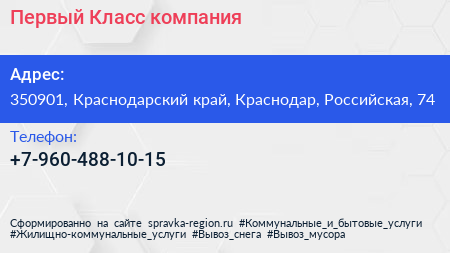 Первый Класс, компания по адресу 350901, Краснодарский край, Краснодар, Российская, 74 в дальнейшем Организация, размещена в следующих категориях: