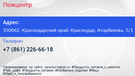 Пожцентр по адресу 350062, Краснодарский край, Краснодар, Атарбекова, 5/1 в дальнейшем Организация, размещена в следующих категориях: