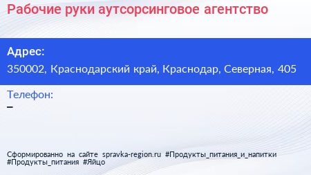 Рабочие руки, аутсорсинговое агентство по адресу 350002, Краснодарский край, Краснодар, Северная, 405 в дальнейшем Организация, размещена в следующих категориях: