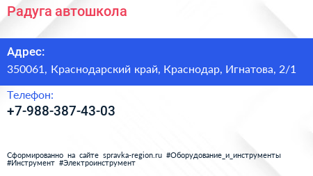 Радуга, автошкола по адресу 350061, Краснодарский край, Краснодар, Игнатова, 2/1 в дальнейшем Организация, размещена в следующих категориях: