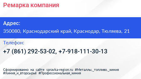 Рeмарка, компания по адресу 350080, Краснодарский край, Краснодар, Тюляева, 21 в дальнейшем Организация, размещена в следующих категориях: