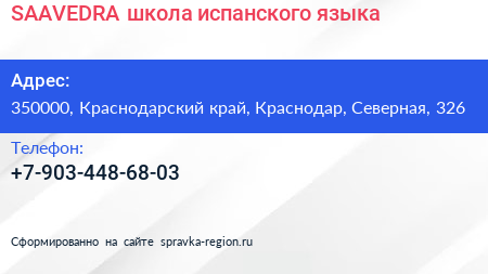 SAAVEDRA, школа испанского языка по адресу 350000, Краснодарский край, Краснодар, Северная, 326 в дальнейшем Организация, размещена в следующих категориях: