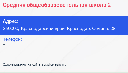 Средняя общеобразовательная школа №2 по адресу 350000, Краснодарский край, Краснодар, Седина, 38 в дальнейшем Организация, размещена в следующих категориях: