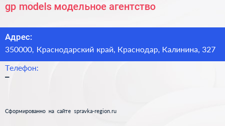 gp models, модельное агентство по адресу 350000, Краснодарский край, Краснодар, Калинина, 327 в дальнейшем Организация, размещена в следующих категориях: